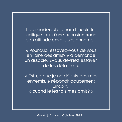 [cta link= »https://www.churchofjesuschrist.org/study/scriptures/bofm/mosiah/29?lang=fra » text= »Car voici, il a ses amis dans l’iniquité, et il maintient ses gardes autour de lui ; et il met en lambeaux les lois de ceux qui ont régné dans la justice avant lui ; et il foule sous ses pieds les commandements de Dieu ; » button_text= »Mosiah 29:22″ button_color= »#DC6B63″ bg_color= »#D8ADAA » text_color= »#FFFFFF »]