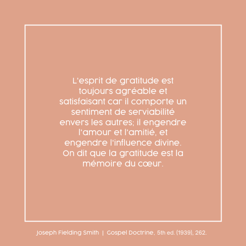 [cta link= »https://www.churchofjesuschrist.org/study/scriptures/bofm/moro/7?lang=fra » text= »C’est pourquoi, mes frères bien-aimés, priez le Père de toute l’énergie de votre cœur, afin d’être remplis de cet amour qu’il a accordé à tous ceux qui sont de vrais disciples de son Fils, Jésus-Christ. » button_text= »Moroni 7:48″ button_color= »#DC6B63″ bg_color= »#D8ADAA » text_color= »#FFFFFF »]