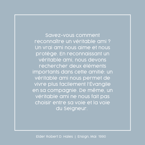 [cta link= »https://www.churchofjesuschrist.org/study/scriptures/dc-testament/dc/93?lang=fra » text= »En vérité, je dis à mon serviteur Joseph Smith, fils, ou en d’autres termes, je vous appellerai amis, car vous êtes mes amis et vous aurez un héritage avec moi » button_text= »Doctrine et Alliances 93:45″ button_color= »#435673″ bg_color= »#99B5DD » text_color= »#FFFFFF »]